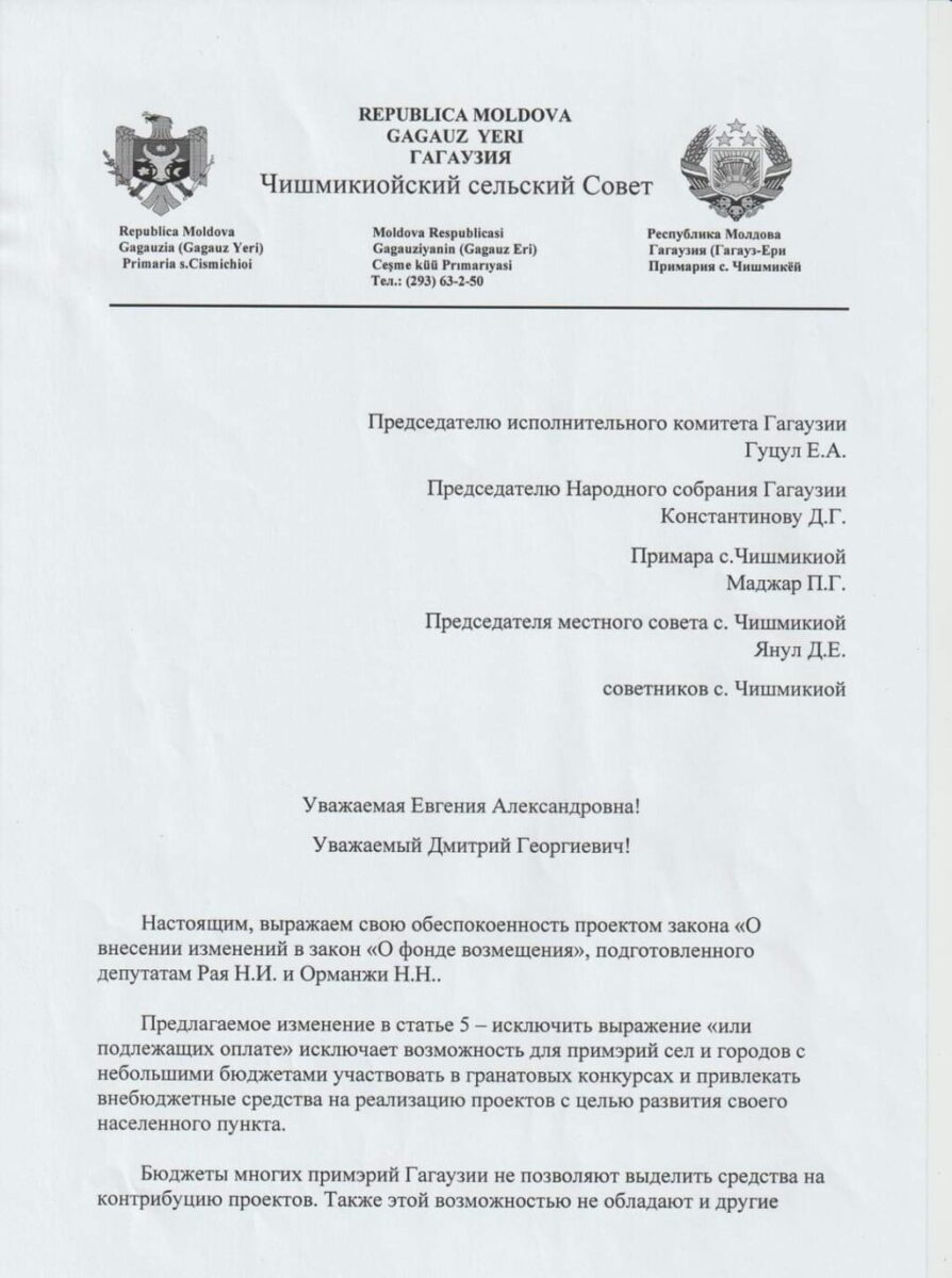 Обращение примара и советников села Чишмикиой к властям ГагаузииНовостиГлавная 1Главная 2 Добавлено 17 апреля, 2024, 21:42 555 Поделиться