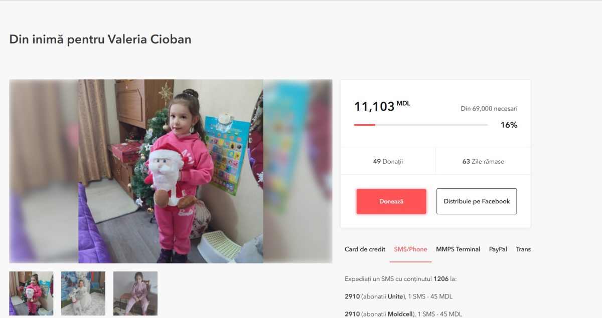 Сбор объявлен на платформе caritate.md Пожертвовать деньги, можно нажав красную кнопку Donează банковской карттой или через различные платежные терминалы. А также можно отправить СМС с содержанием «1206»
